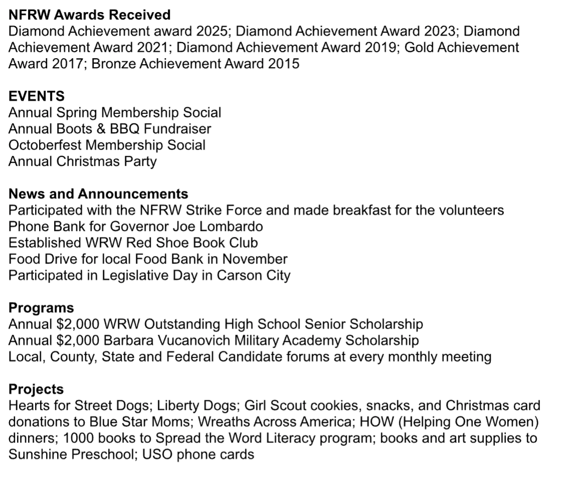 NvFRW Legislative Focus