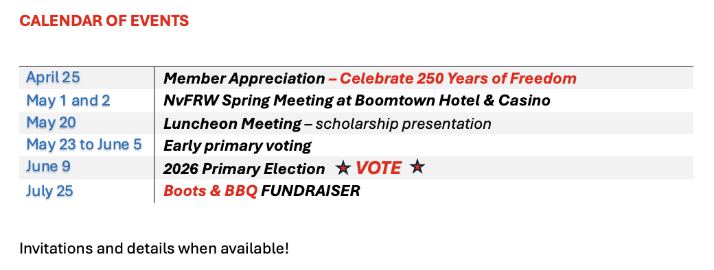 NvFRW Legislative Focus